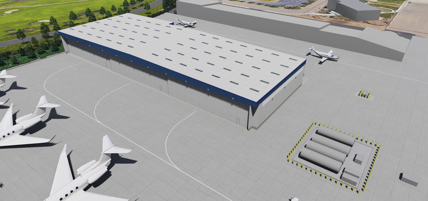 - 350'-wide multi-panel free-floating hangar door system for maximum aircraft access to hangar.